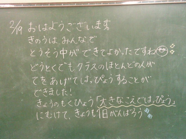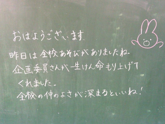 学級担任が黒板メッセージを用意して、子供たちの登校を待ちます。