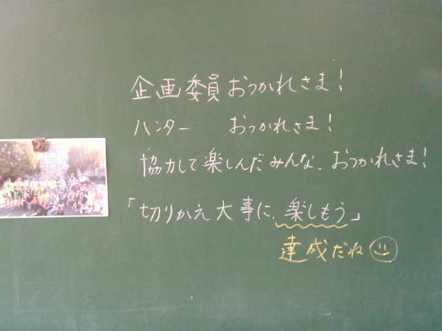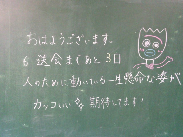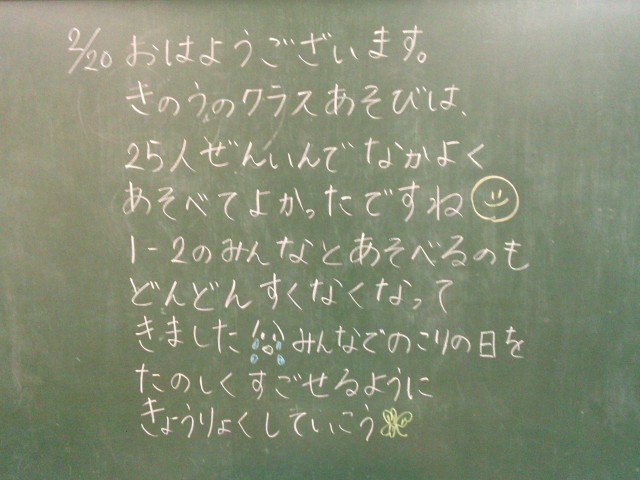 学級担任が黒板メッセージを用意して、子供たちの登校を待ちます。