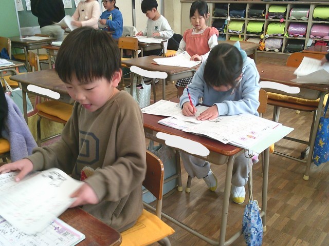 1年生は、漢字テストのなおしやプリント学習をがんばっていました。まとめの時期ですね。