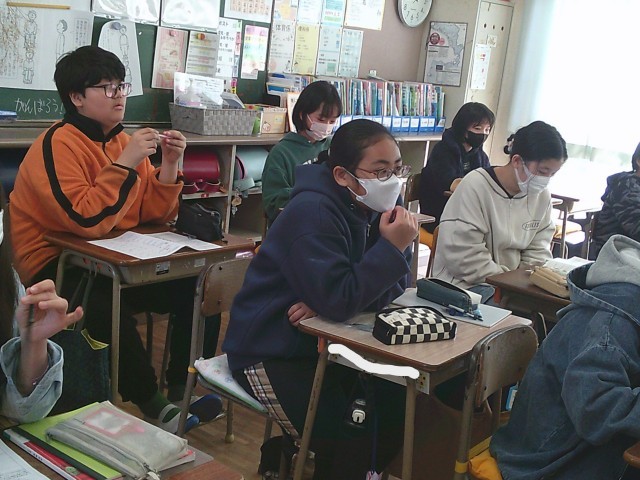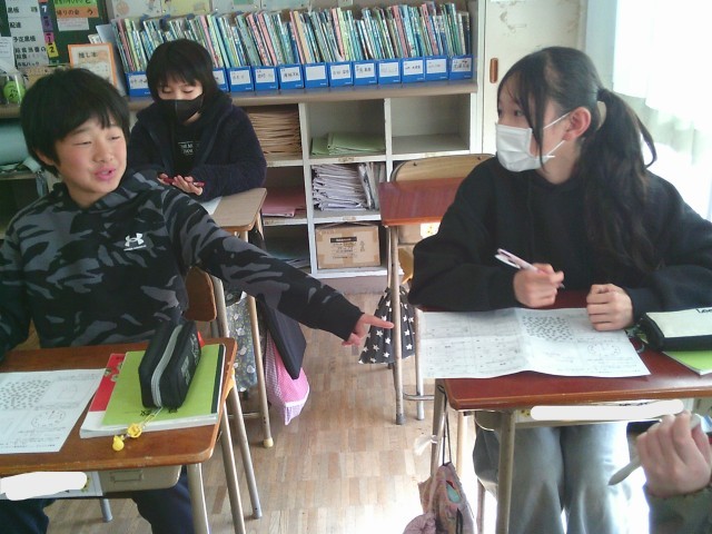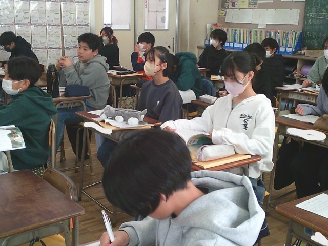 1組は、算数の授業でした。プリント問題の解説を聞きながら確認していました。2組は、道徳の授業でした。みんなで主人公の気持ちになって考えました。