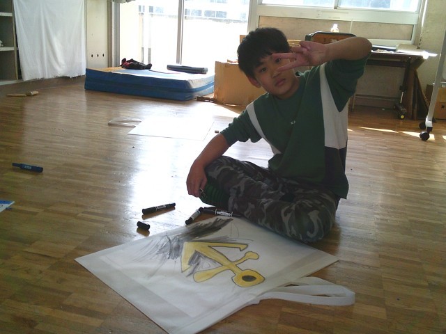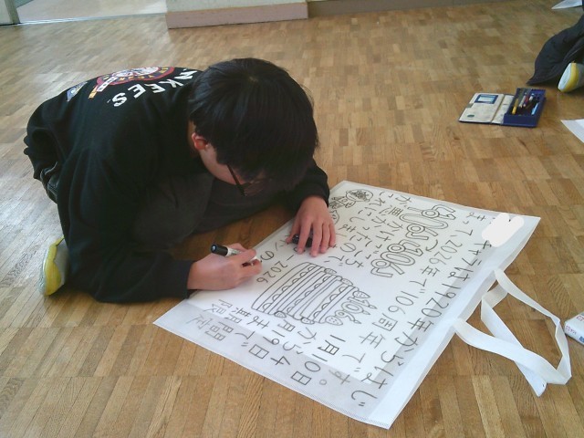 ききょう組では、作品バッグにそれぞれの絵を描き自分だけのバッグを仕上げていました。