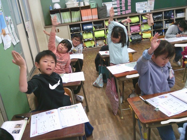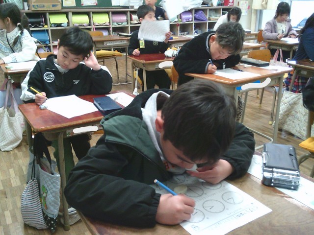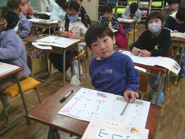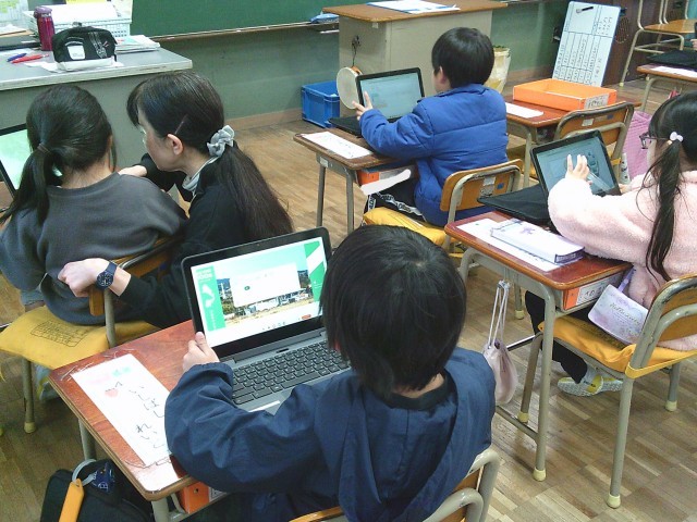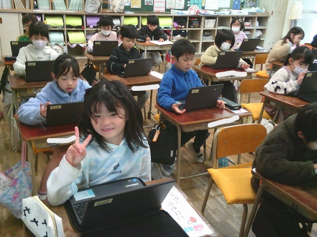 1組は、書写の授業でした。丁寧に書いていました。2組は、算数の復習プリントに取りくんでいました。3組は、算数の授業で、AIドリルに取り組んでいました。