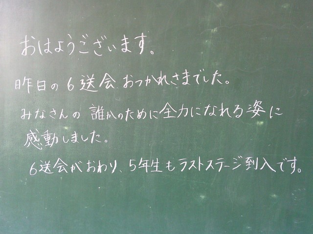 学級担任が黒板メッセージを用意して、子供たちの登校を待ちます。