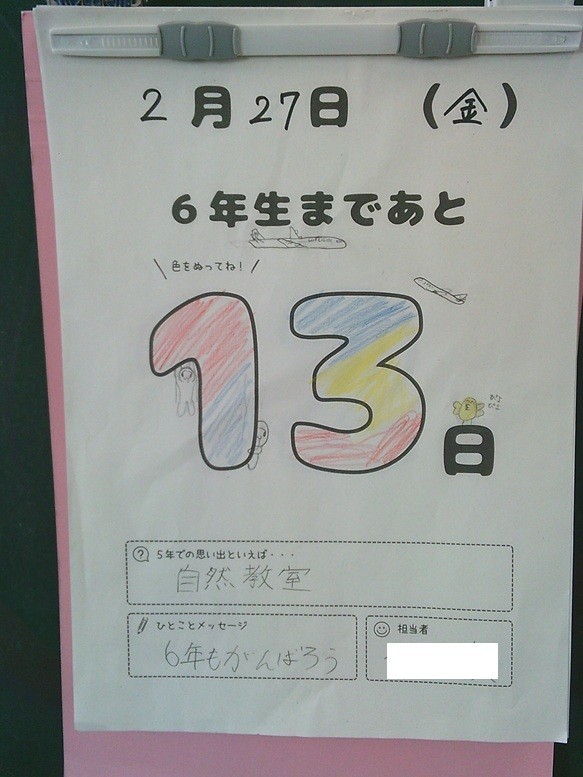各クラスに掲示されているカウントダウンカレンダーです。授業日数も残り少なくなってきました。