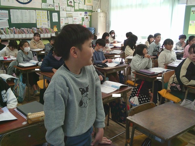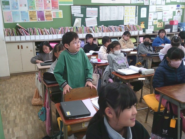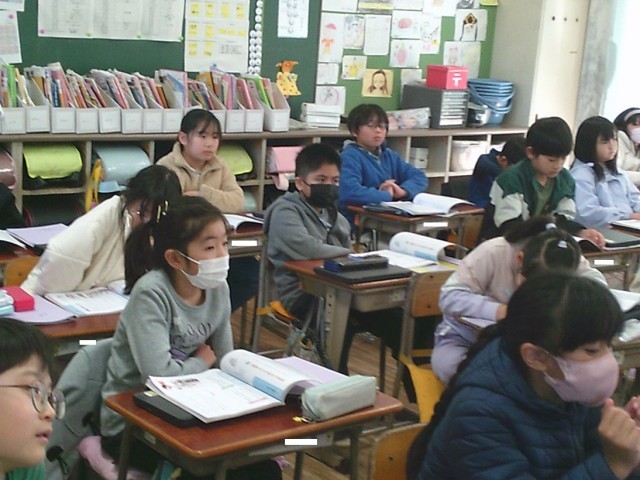 3年生の学習の様子です。道徳では「音のこうずい」という資料を使って、周りの人のことを考えて行動することについて、みんなで話し合いました。