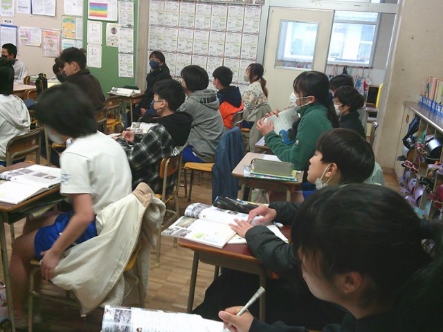 6年生の学習の様子です。両クラスとも卒業に向けて小学校のまとめの学習を行っています。クロームブックから得た情報を参考にしながら、自分の見方、考え方を養っています。