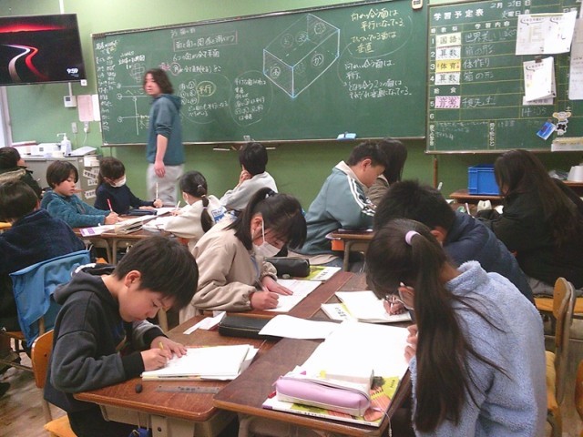 4年生の学習の様子です。両クラスとも主体的に学ぶ姿が見られました。算数では「立方体と直方体」の学習をしていました。