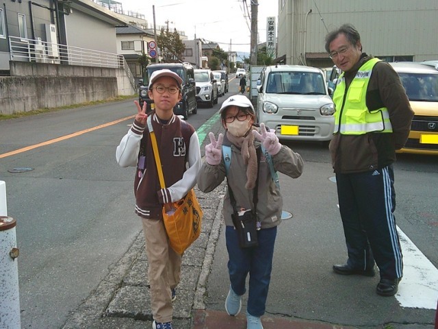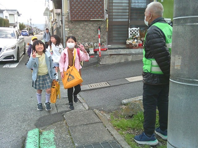 スクールガードの皆様が今朝も子供たちの登校に際し、交通安全を見守ってくださっています。本当にありがとうございます。