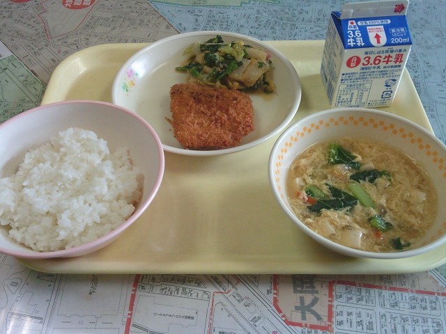 今日の給食は、「ご飯、牛乳、ぶりフライ、ごまあえ、かきたま汁」でした。みんなで美味しくいただきました。