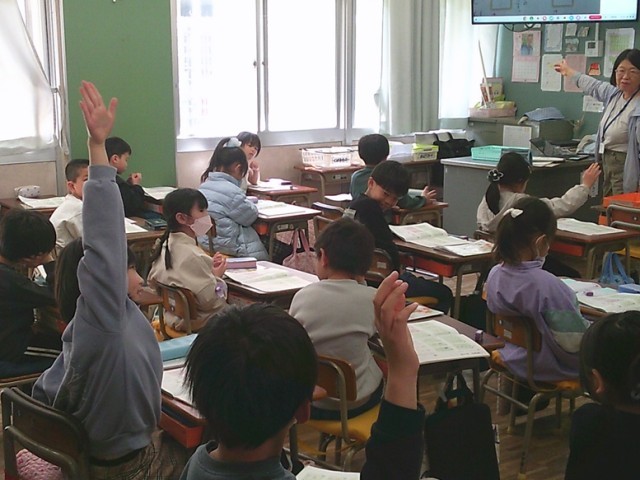 2年生の学習の様子です。3クラスとも主体的に学ぶ姿が見られました。全員集中して、友達や教員の話を聞いていました。