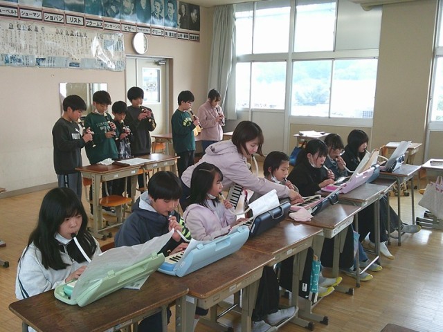 5年生の学習の様子です。3クラスとも集中して学習に取り組んでいました。音楽では、エルガーが作曲した「威風堂々」を全員で合奏しました。