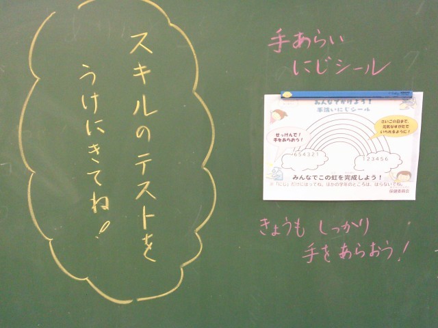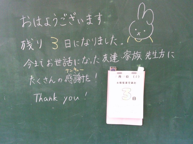 学級担任が黒板メッセージを用意して、子供たちの登校を待ちます。