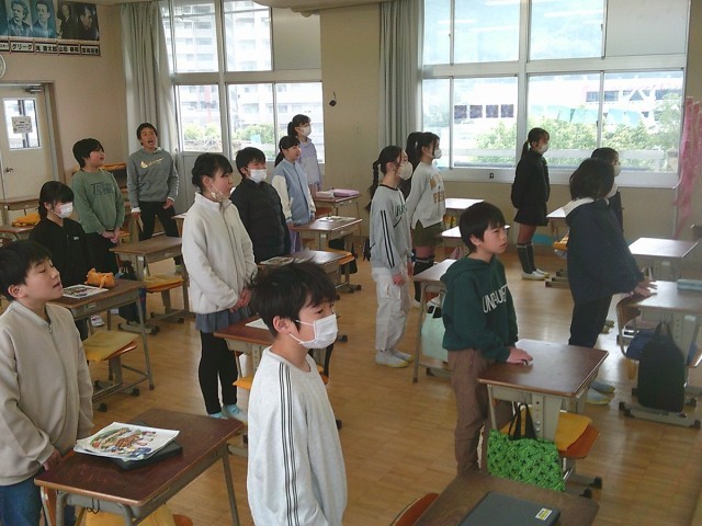 5年生の学習の様子です。3クラスとも元気に生活しています。学級レクでドッジボールをしたり、5年の既習曲を合唱したりと、意欲的に活動していました。