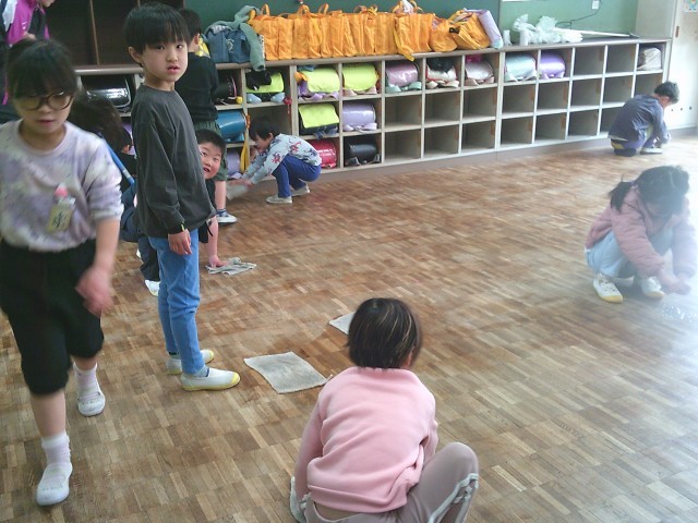1年生の学習の様子です。3クラスとも学級活動の時間において、教室や廊下などの大掃除を行っていました。みんな頑張っていました。