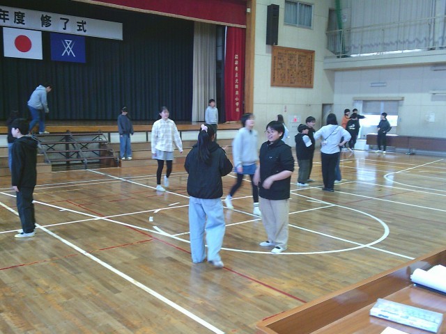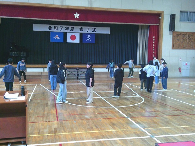 6年生の学級活動の時様子です。両クラス合同で、卒業式に向けて最後の練習を行っていました。最初にペアになって声だし練習をしました。