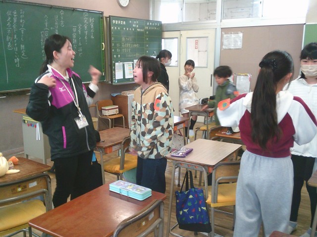 6年生は、学級でゲームをしたり、ペアで質問し合ったりして、コミュニケーション活動を行っていました。
