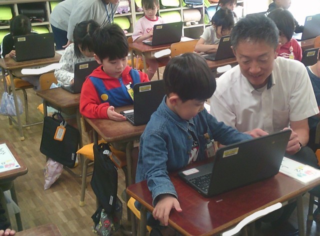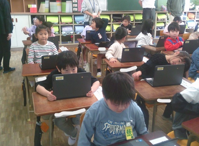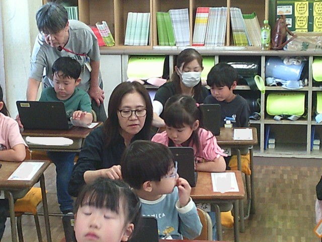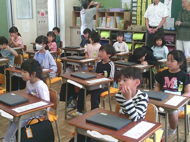 今日は、1年生へのクロームブック貸与式でした。6年間使うクロームブックの使い方の約束を確認した後、ボランティアの方にサポートいただき、クラスルームにも入ることができました。家には、木曜日に持ち帰ります。