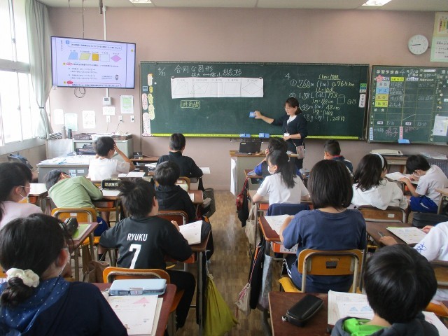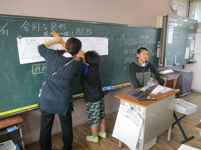 算数では、合同な図形について学びます。対角線を引いて、そこに表れた図形について考えていきます。