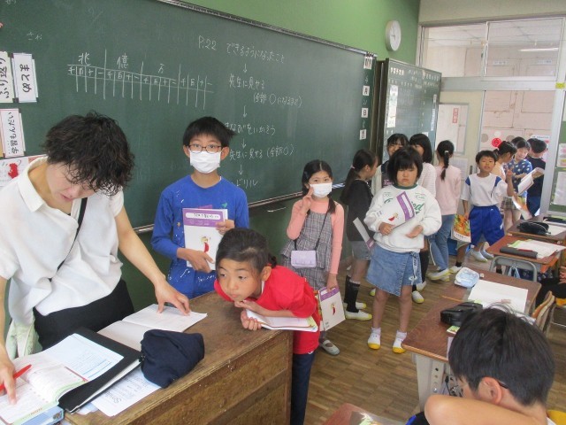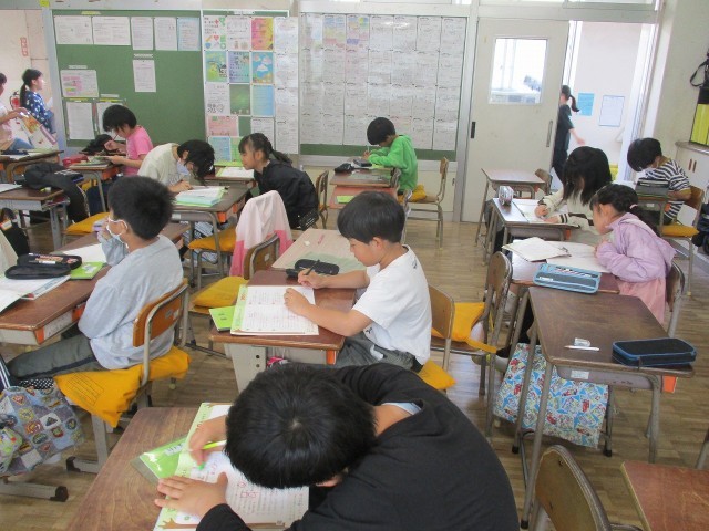 算数では、大きな数のまとめの問題に挑戦しています。先生に答えを確認してもらいました。