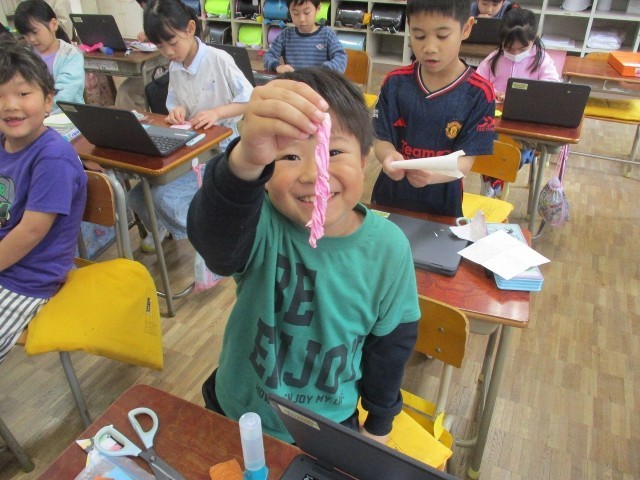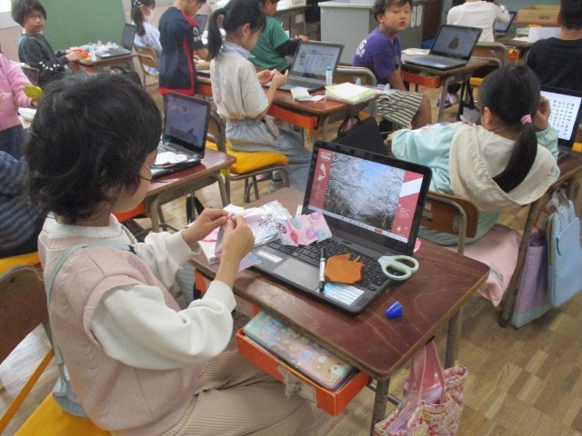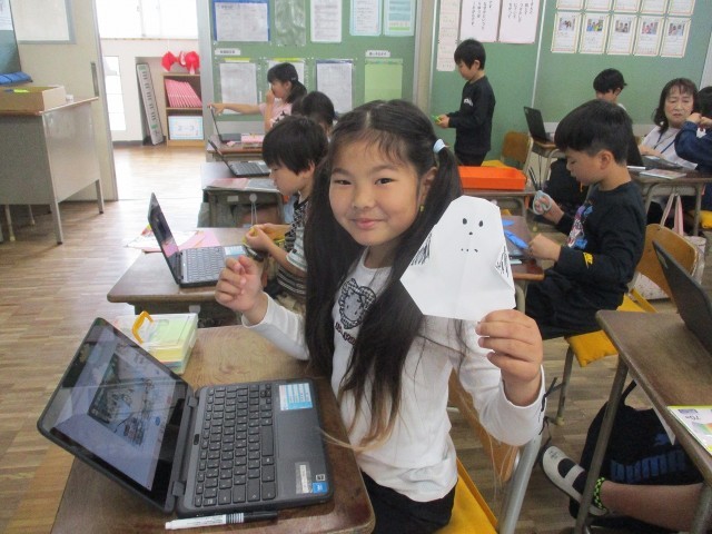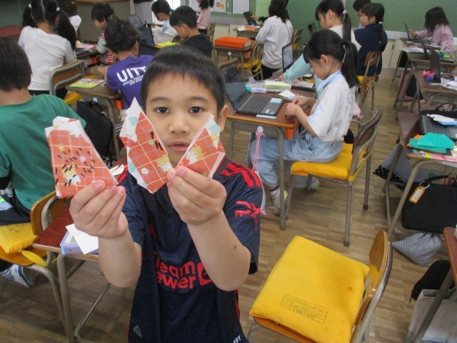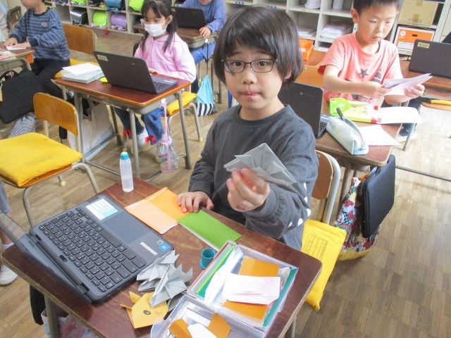 クロムブックで折り紙の折り方を調べて、実際に作っていました。