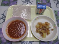 ご飯、牛乳、焼き塩鮭、ひじきと大豆の炒め煮、味噌けんちん汁