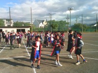5年生とはなわとび対決です。これはハンディなしで、2分間で何回飛べるかを競いました。6年生が145回5年生が126回でした。