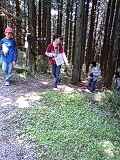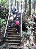 五年生、自然教室のスタート。ちょうど半分のグループが愛鷹山の林道を通過しました。これから池の平まで登ると楽しみなお弁当です。