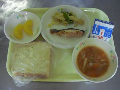 ・コーンしょくパン ・ぎゅうにゅう ・さけのマヨネーズやき