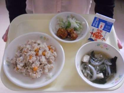 ・ツナピラフ ・ぎゅうにゅう ・とりのからあげ
