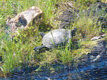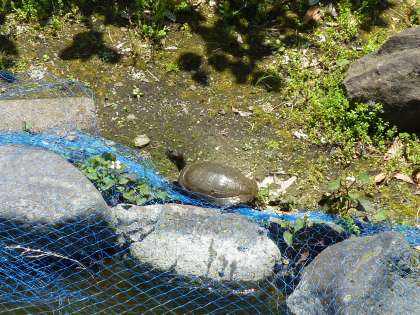 大岡南小の池に亀の『かめ子』が、仲間入りしました。