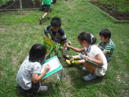 理科ではひまわりの観察をしていました。
