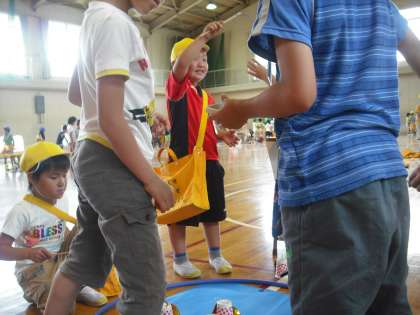 2年生が、1年生をあそびランドに招待してくれました。もぐらたたきやさかなつりゲームを楽しみました。