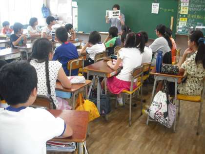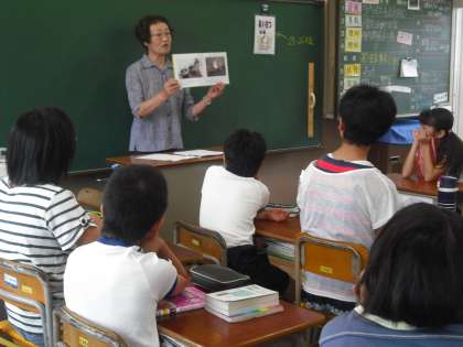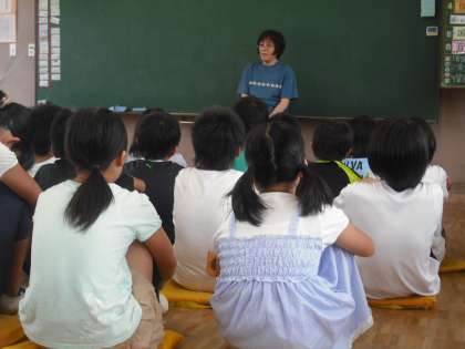 今日は、高学年にお話屋さんが来てくれました。