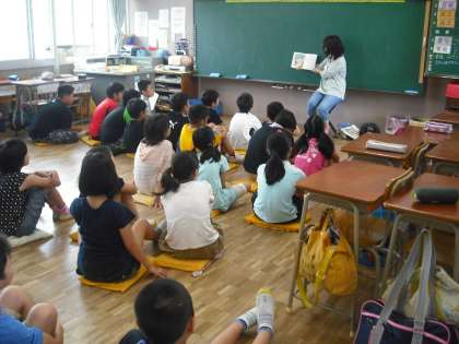 本の読み聞かせや、語りに耳を傾けています。