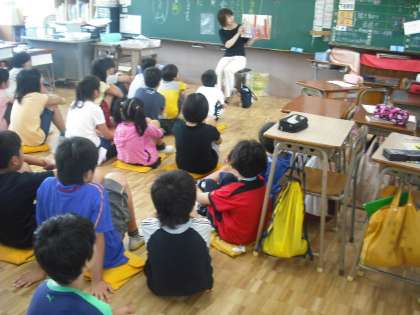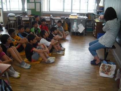 今日は、高学年にお話屋さんが来てくれました。