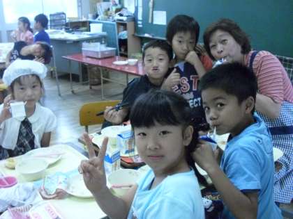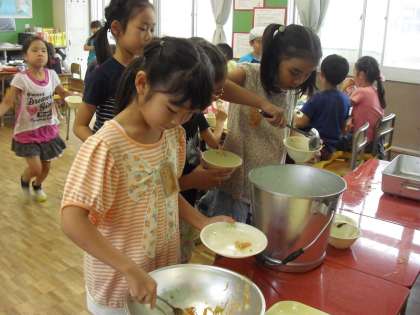 みんな楽しそうに給食を食べてくれていました。おかわりに行列ができてとてもうれしいです。