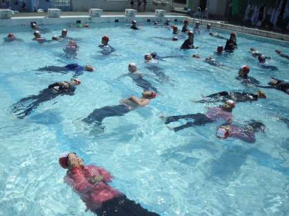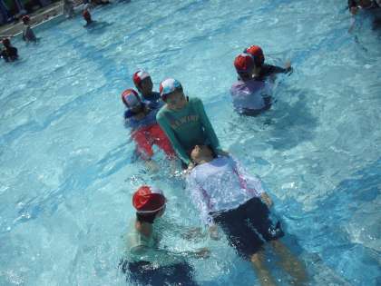 着衣状態のまま、水中で動くことの大変さを感じることができました。
