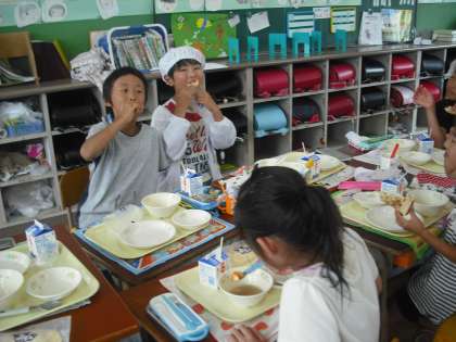 今日で1学期の給食はおしまいです。アイスクレープが出て大喜びです。