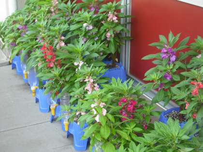 南小は、花壇だけでなくベランダにも花がいっぱいです。