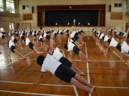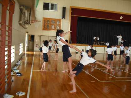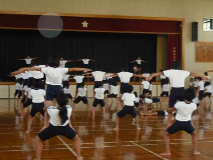 9月の運動会に向けて、学年で組体操の練習に取り組んでいます。