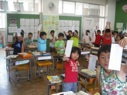 手紙の書き方を学習してきました。今日は、本物の封筒に宛名書きをしました。郵便番号や、難しい地名・番地などを正しく書こうと、緊張した面持ちで取り組んでいました。できあがると笑顔、笑顔です。