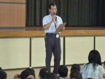 生徒指導主任の近藤先生から、夏休みのすごし方についてお話がありました。