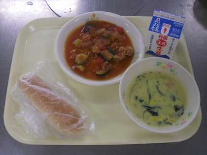 ・チキンラタトゥイユ ・とうにゅうのコーンスープ