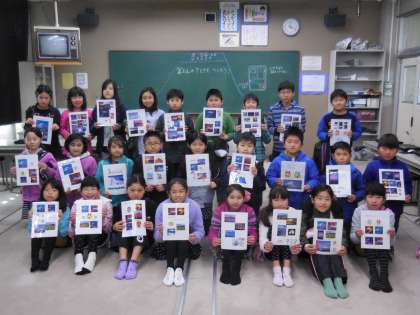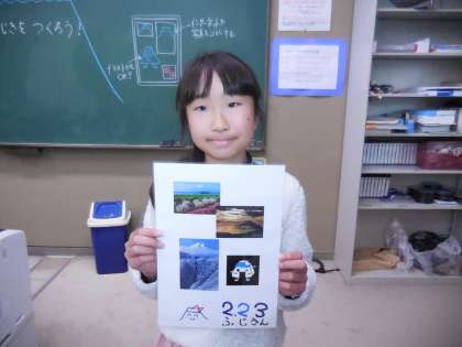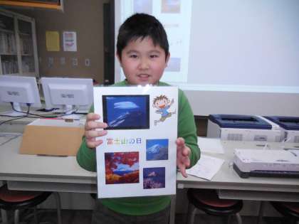 コンピュータ室で、富士山の写真をレイアウトして自分用の下敷きを作りました。