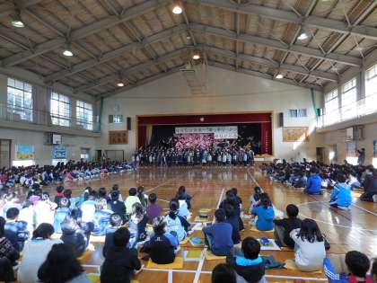 お返しに、六年生は「最後のチャイム」を歌いました。