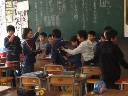 校長先生から話しがあった「目標」について考えたり、書き初めを鑑賞したり、新しい係を決めたりします。新たな気持ちで3学期をスタートします。