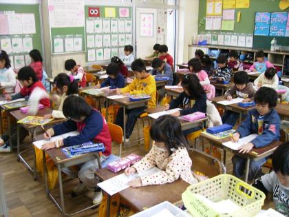 金曜日に実施した定着度調査。1年生も真剣です。