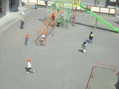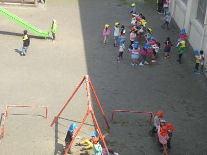 元気な1年生が、中庭で楽しそうに遊んでいました。