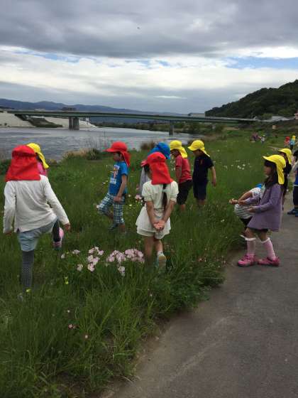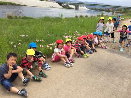 河川敷でお花を見ながら休憩です。綺麗な春の花が咲いています。