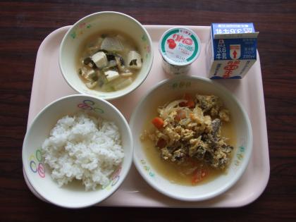 今日のメニュー 牛丼 大根とわかめの味噌汁 ヨーグルト 牛乳